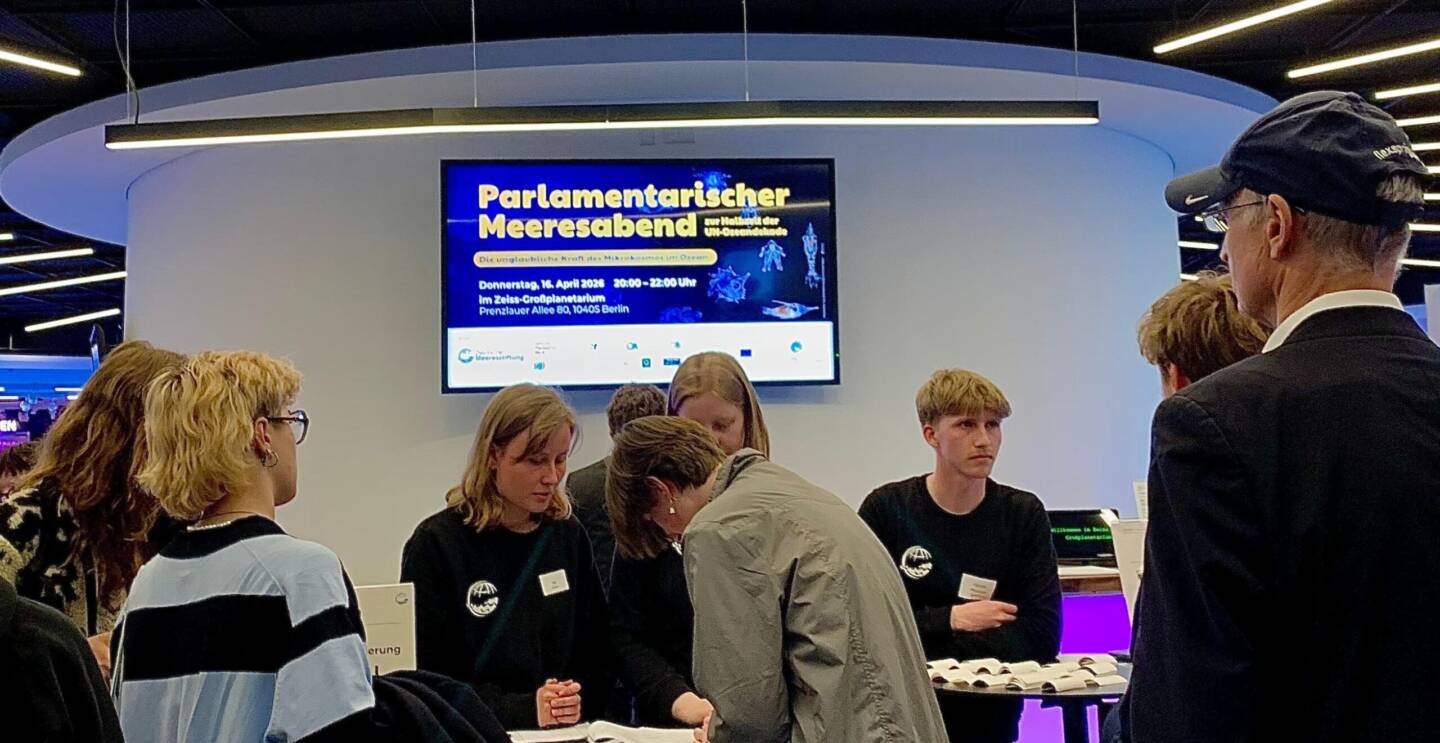 Der Parlamentarische Meeresabend zur Halbzeit der UN-Ozeandekade am 16. April 2026 fand unter dem Titel “Die unglaubliche Kraft des Mikrokosmos im Ozean” im Zeiss-Großplanetarium in Berlin statt. Keynotespeaker war unser Mitglied Daniel J. Dahm.